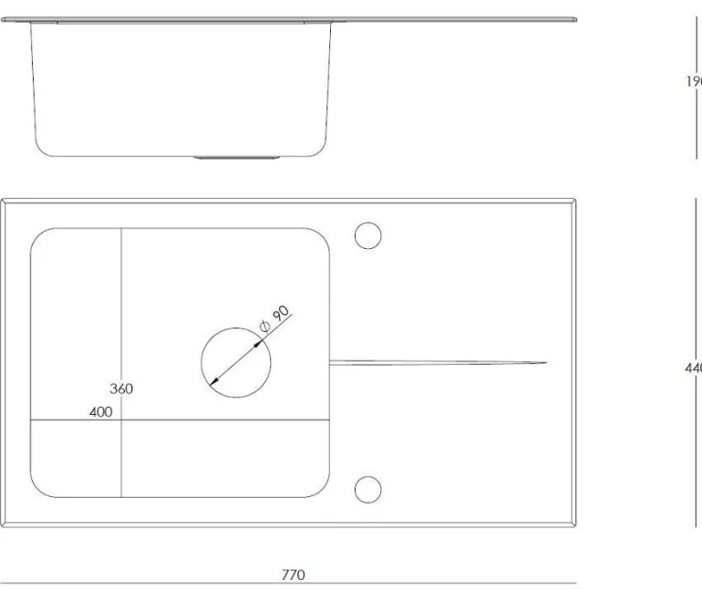 - Długość zlewozmywka (w mm) 770