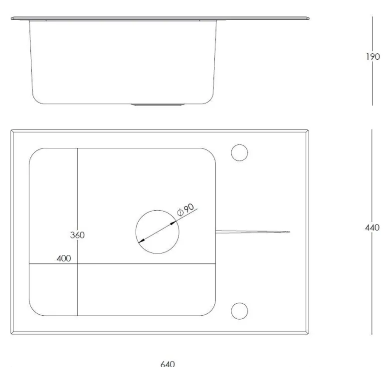 - Długość zlewozmywka (w mm) 640