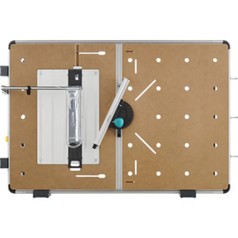 – kompatybilny z większością dostępnych na rynku pił ukośnych dzięki wielofunkcyjnemu układowi otworów w płycie stołu.