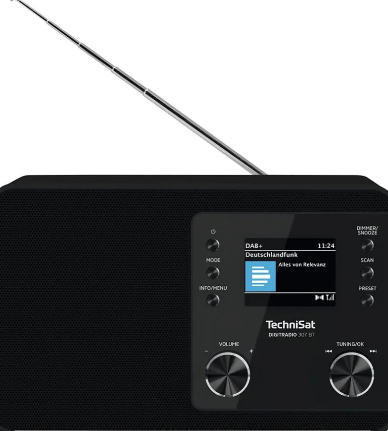 Oprócz gniazda AUX zewnętrznego źródła dźwięku istnieje także opcja odtwarzania na urządzeniu DIGITRADIO 307 BT muzyki za pośrednictwem technologii Bluetooth z komputera PC lub smartfona. Wybór muzyki jest praktycznie nieograniczony.