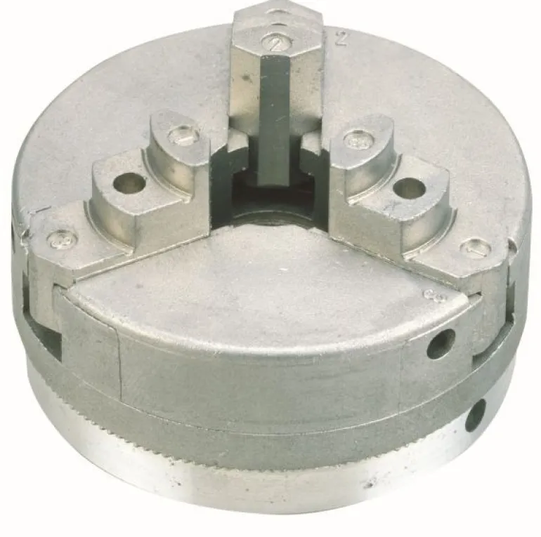 Do mocowania koncentrycznego. Z ciśnieniowego odlewu cynku. Zakres mocowania wewnętrzny 1,5 – 32 mm i zewnętrzny 12 – 65 mm. Uchwyt o gwincie M 16 x 1 do wkręcania w trzpień wrzeciennika tokarki DB 250.