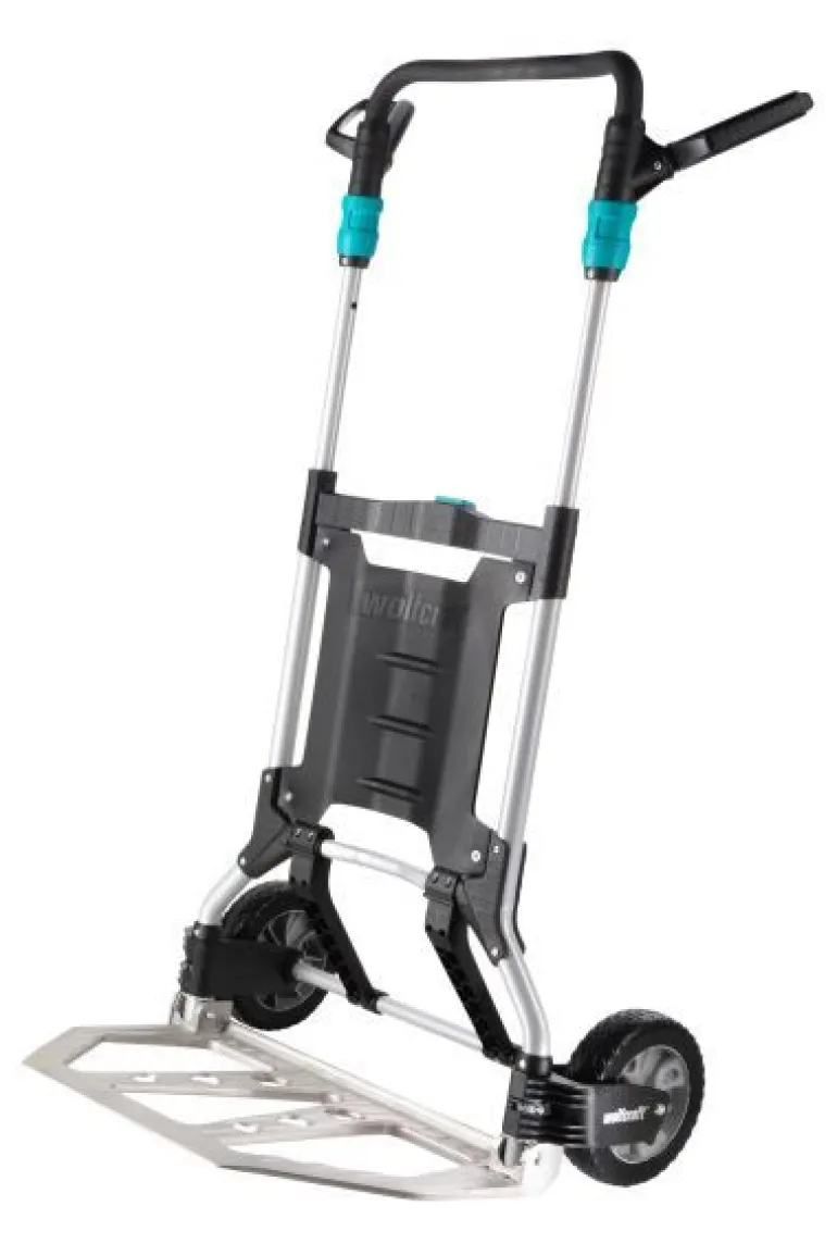 – mimo dużego udźwigu do 200 kg, dzięki specjalnie opracowanemu mechanizmowi wózek łatwo się składa, co daje możliwość jego komfortowego przechowywania