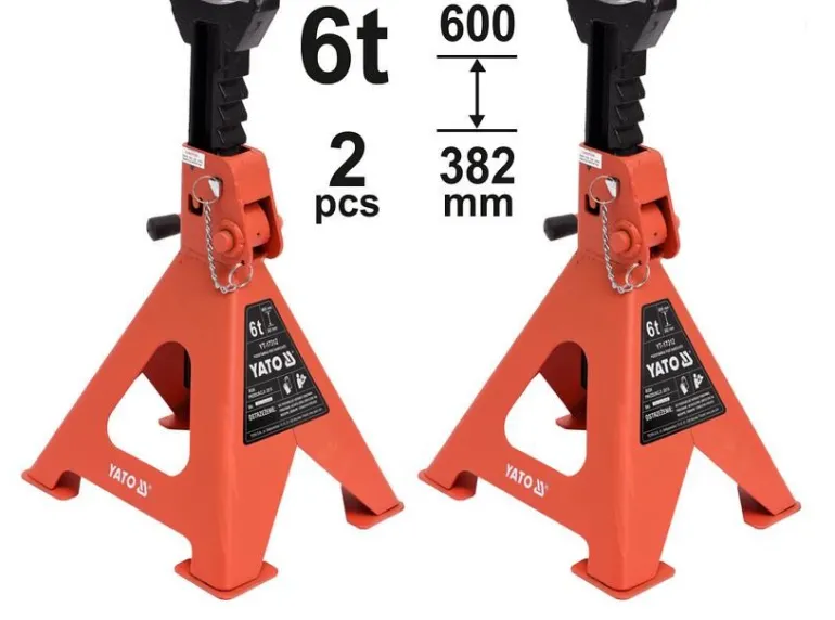 Profesjonalne podpórki pod samochód posiadają cztery łapy, regulację wysokości w zakresie 382-600 mm, udźwig 6 ton.