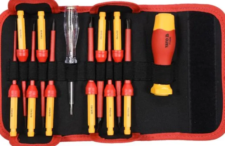 Izolowany wkrętak w zestawie z 10 końcówkami marki YATO YT-28290.