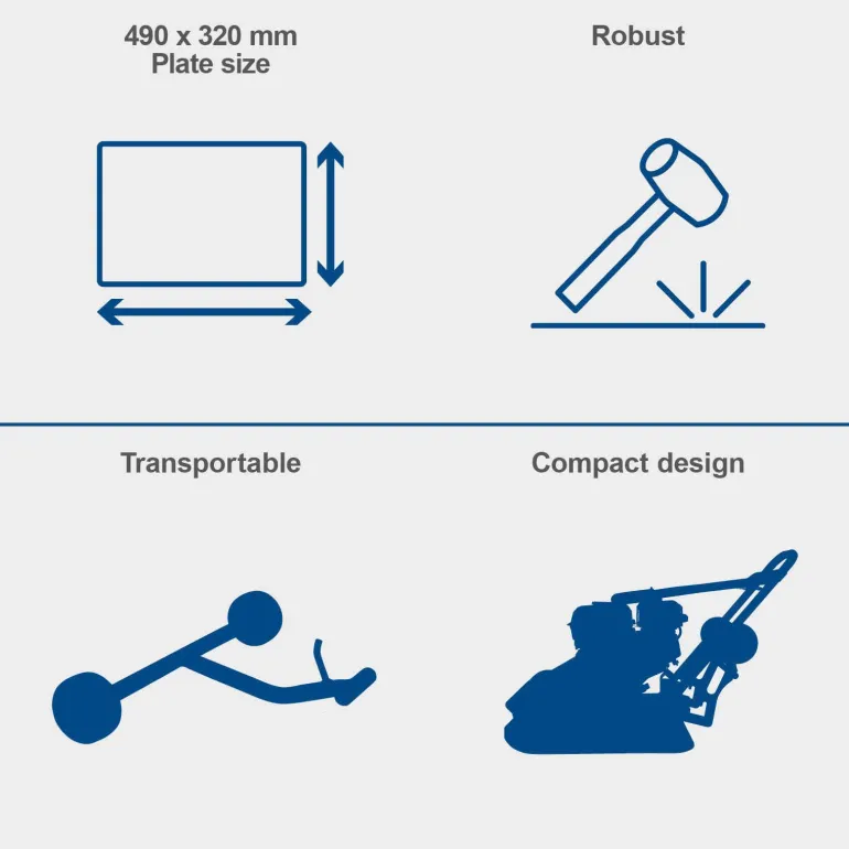 - Praca na Różnych Powierzchniach: Urządzenie jest wyposażone w gumową matę, która chroni powierzchnie brukowe podczas zagęszczania. Automatyczny przesuw pozwala na łatwe i precyzyjne sterowanie kierunkiem ruchu zagęszczarki, co zwiększa jej wszechstronność i efektywność.