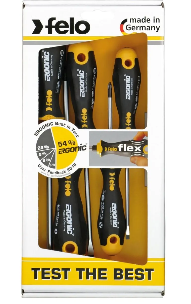 Wkrętaki Felo charakteryzują się niezwykle dużą precyzją wykonania końcówek jak również trwałością. Zdolne są przenosić najwyższe momenty obrotowe, a tym samym spełnić wysokie wymagania wszystkich znanych norm technicznych. Ich rękojeści są ukształtowane w sposób niespotykanie ergonomiczny – umożliwiają pewny chwyt oraz minimalny wysiłek przy pracy. Dodatkowo rękojeści wyposażone są w poprzeczny otwór mogący służyć jako zawieszka lub też można go wykorzystać do włożenia dźwigni ułatwiającej przykręcanie/odkręcenie śruby.