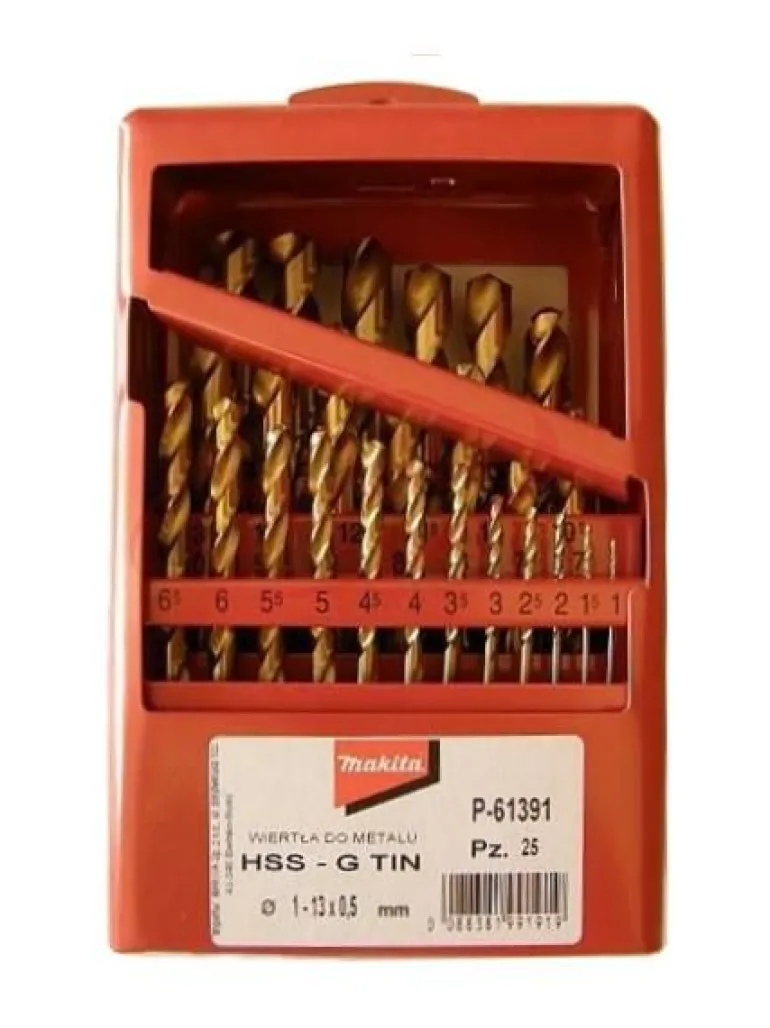 Zestaw wierteł do metalu w powłoce tytanowej HSS-G TiN wg DIN338 25 sztuk