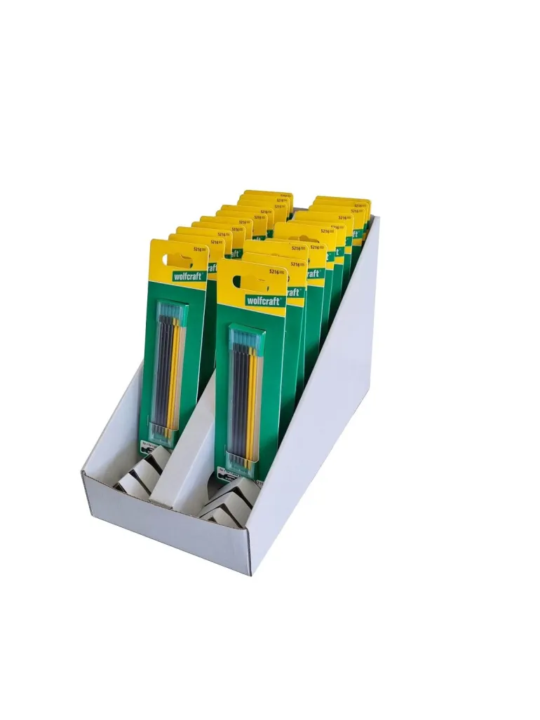 Jeden zestaw zawiera sześć zapasowych wkładów o Ø 2,8 mm i długości 120 mm do ołówka do głębokich otworów (np. wolfcraft nr art. 5215000)