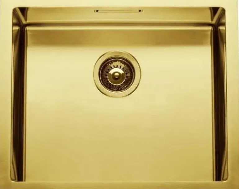 - Zlewozmywak został wykonany ze stali inox, na który została naniesiona powłoka PVD w kolorze złotym.