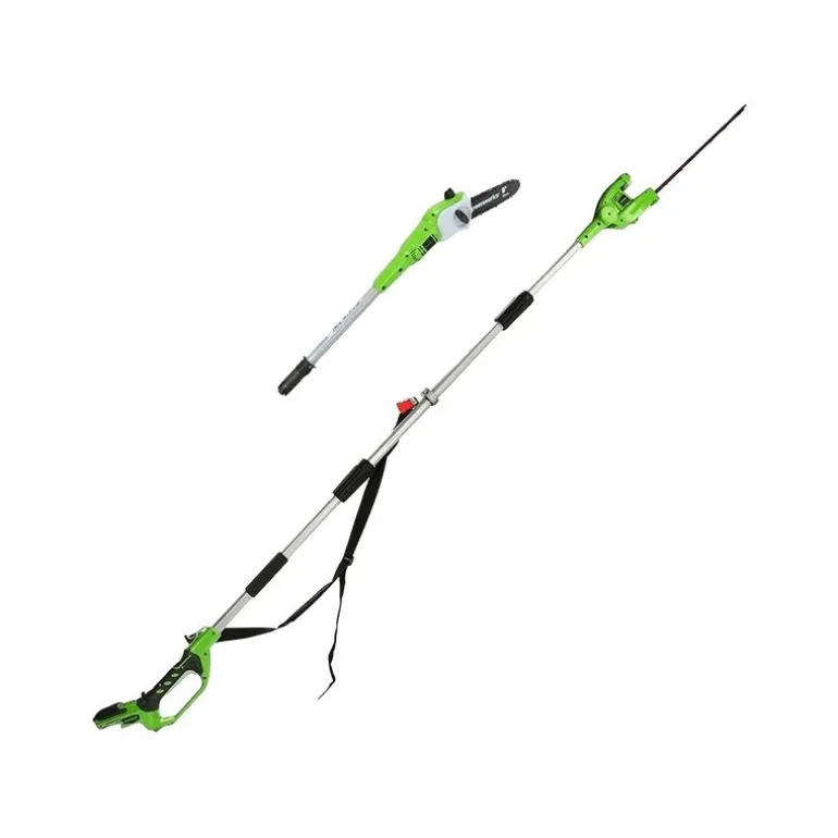 Wielofunkcyjne urządzenie łączące w sobie pilarkę i nożyce do żywopłotu. Wyposażone w prowadnicę o długości 20 cm, nożyce o długości 51 cm i 3-częściowy wysięgnik (do 2,4 m wysokości) pozwala na komfortowe obcinanie gałęzi i wysokich żywopłotów.