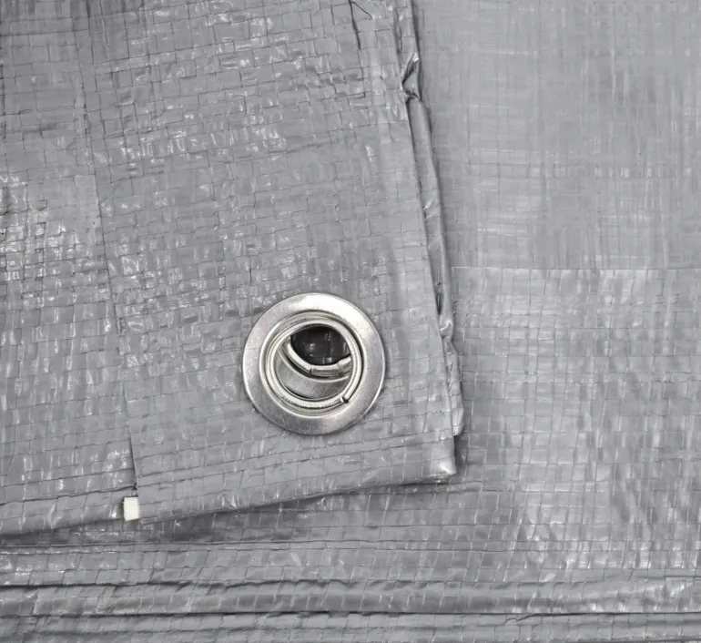 Krawędzie zgrzewane na gorąco z aluminiowymi oczkami mocującymi co 1m oraz wzmocnione sznurkiem dla maksymalnej wytrzymałości przed wiatrem i deszczem.