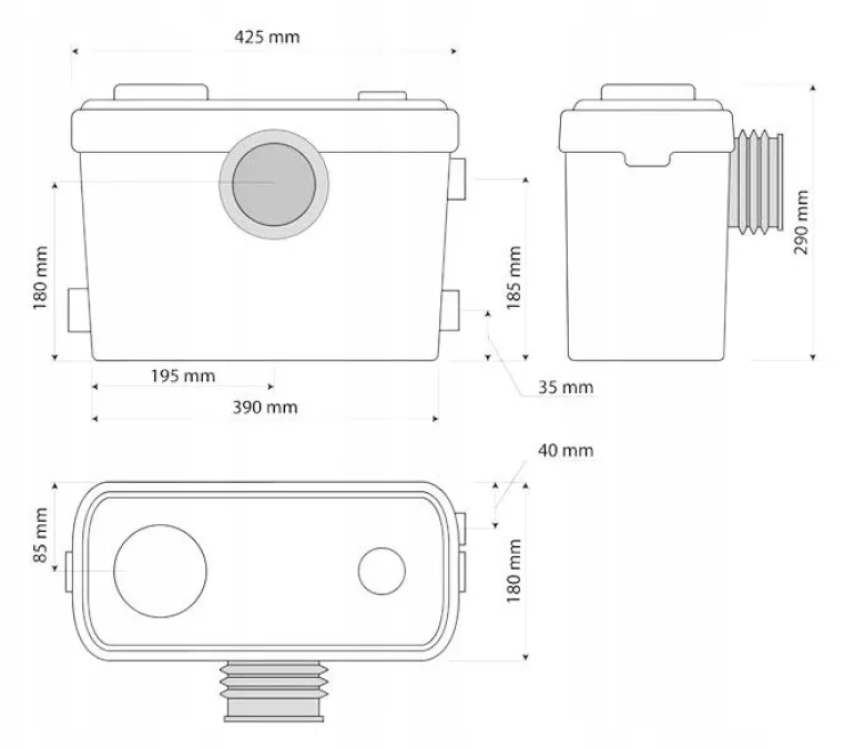 Wyposażona w noże tnące, które rozdrabniają i przetłaczają ścieki fekalne, papier toaletowy i odpadki organiczne.