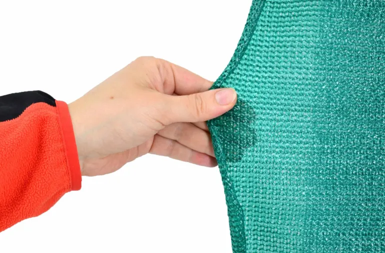 Oczka montażowe na górnej i dolnej krawędzi siatki.