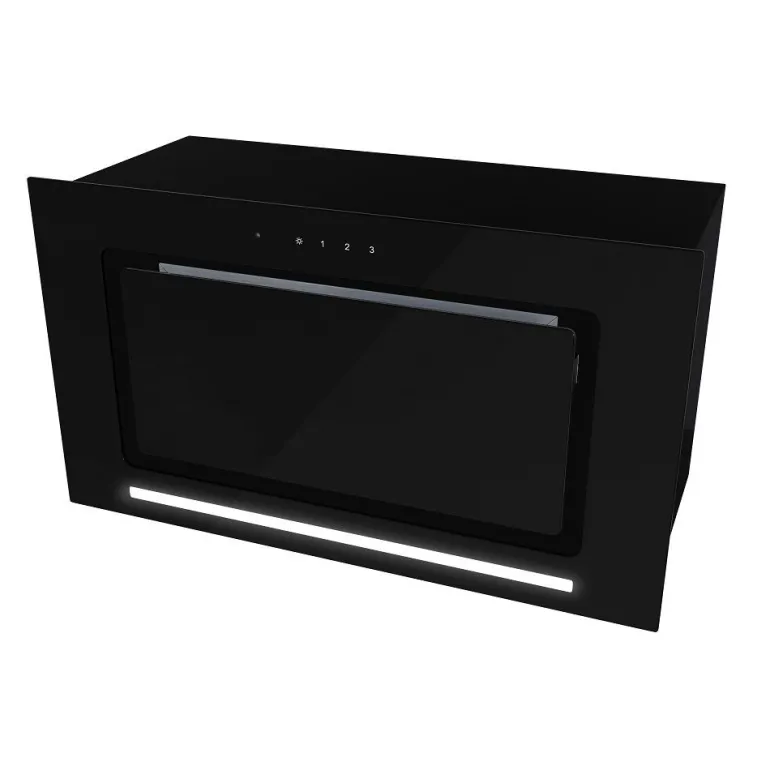 Okap kuchenny do pełnej zabudowy. Występuje w dwóch rozmiarach 52 oraz 72 cm. Wykonany ze stali oraz szkła. Oświetlenie – listwa LED o mocy 6W. Możliwość pracy jako wyciąg lub pochłaniacz. Sterowany dotykowo oraz za pomocą pilota dodanego w zestawie.