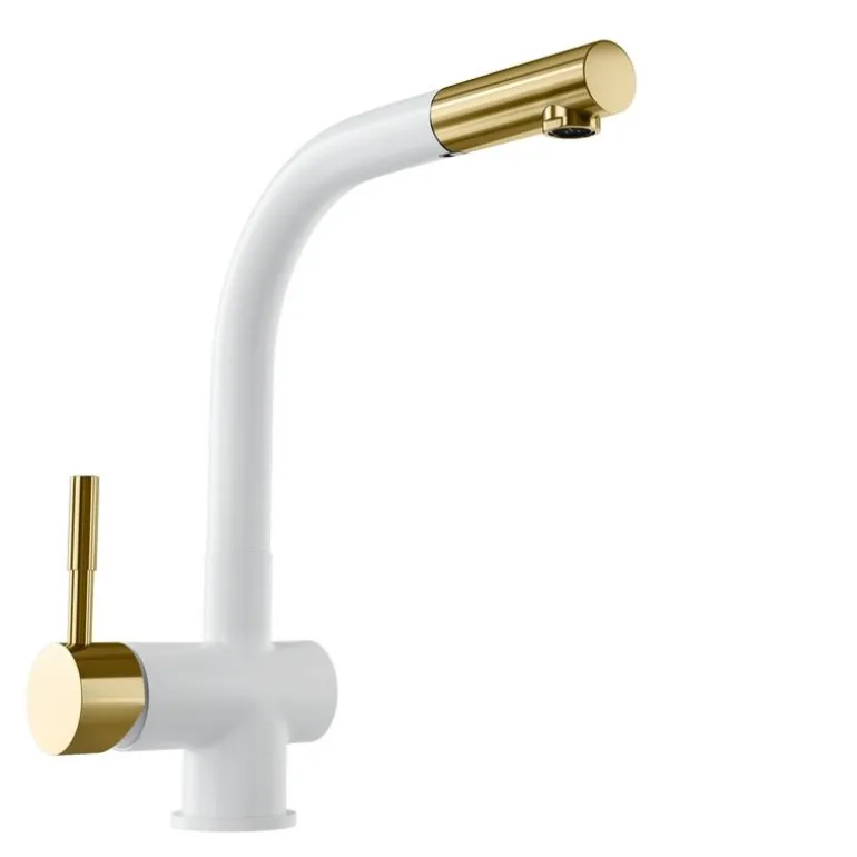 Wybierz Lobio White/Light Gold Mat Ring i ciesz się pięknem i stylem, ale także niezrównaną funkcjonalnością w Twojej kuchni. To nie tylko bateria, to element, który podniesie komfort codziennych czynności i nada Twojej kuchni charakteru. Zamów już dziś i przekonaj się, jak wiele może zmienić jeden dobrze wybrany detal. Ogromną zaletą baterii jest wyciągana wylewka z solidnym mocowaniem, która pozwoli zadbać o najwyższy komfort zmywania. Elegancki, stylowy kształt sprawiają, że bateria znajdzie zastosowanie zarówno w nowoczesnych, jak i klasycznych kuchniach.