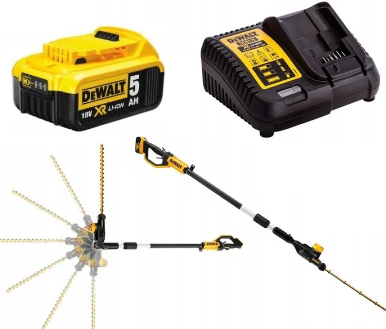 - Nożyce do żywopłotu mają wydłużony zasięg na 3,35 metra i innowacyjną 7 pozycyjną głowicę przegubową, jego szybkość operacyjną to 2800 spm.
