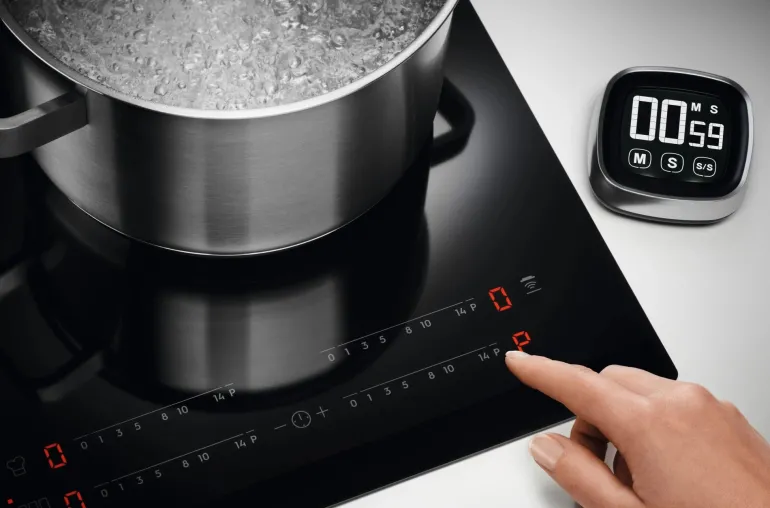 System ogrzewania indukcyjnego płyty podgrzewa tylko spody garnków lub patelni. Dzięki temu otaczająca je powierzchnia zawsze pozostaje chłodna i można bez problemu wytrzeć wszystkie rozlane potrawy.