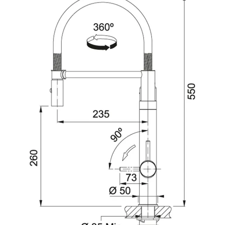 Obrót wylewki w stopniach: 360
