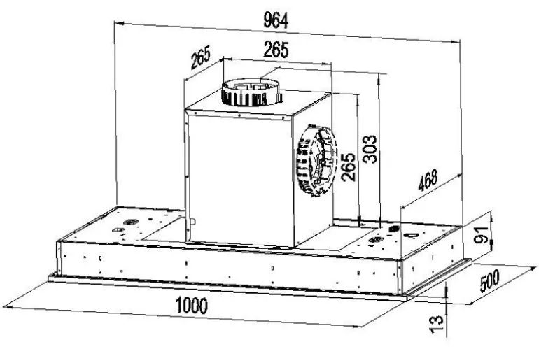 Krótki opis: klasa energetyczna B, sufitowy, szer. 100 cm, gł. 50 cm, sterowanie za pomocą pilota, zakres prędkości: 3 + boost, wydajność max. 590 m3/h, głośność min. 52 dB, wykonanie: czarne szkło, stal lakierowana na kolor czarny, oświetlenie diodowe 2 x 13 W, dodatki: pilot. Linia GLOBALO Design
