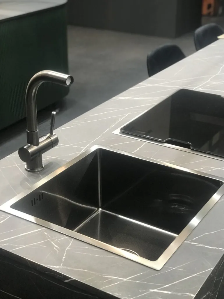 - Zlewozmywak został wykonany ze stali inox, na który została naniesiona powłoka PVD w kolorze antracyt.