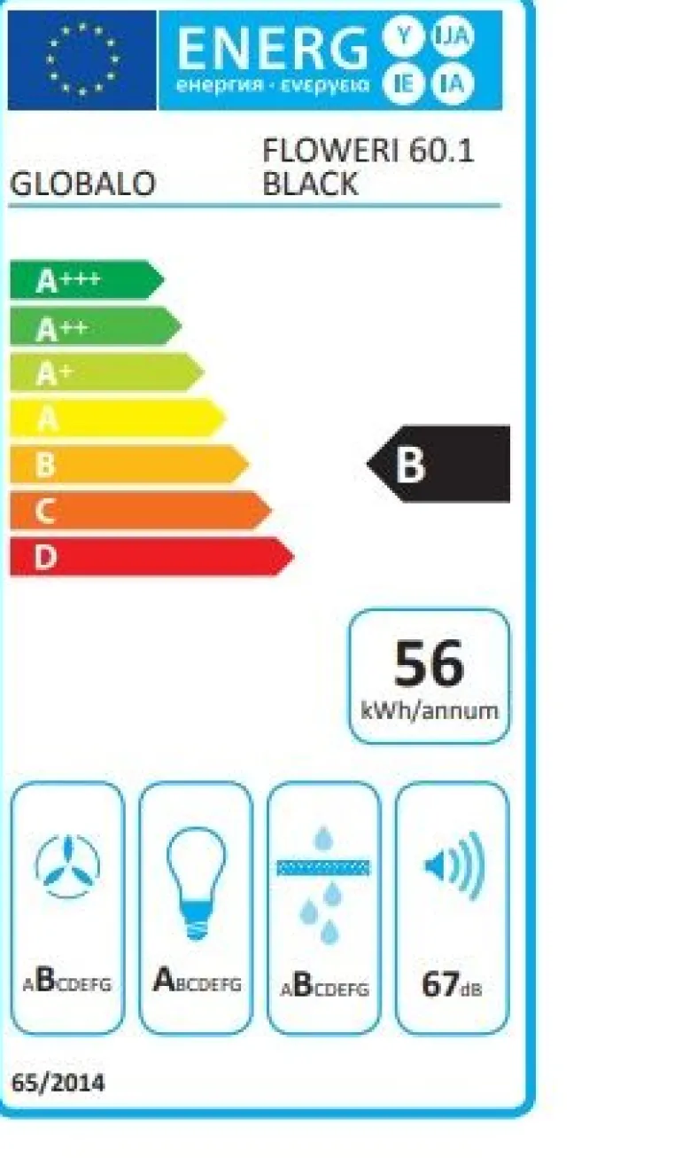 Klasa energetyczna B, do zabudowy, szer 60, gł 30 cm, sterowanie za pomocą pokręteł, zakres prędkości: 3 – stopniowy, wydajność max. 570 m3/h, głośność min. 45 dB, wykonanie: czarne hartowane szkło, stal lakierowana na czarno, oświetlenie LED 2 x 3W.