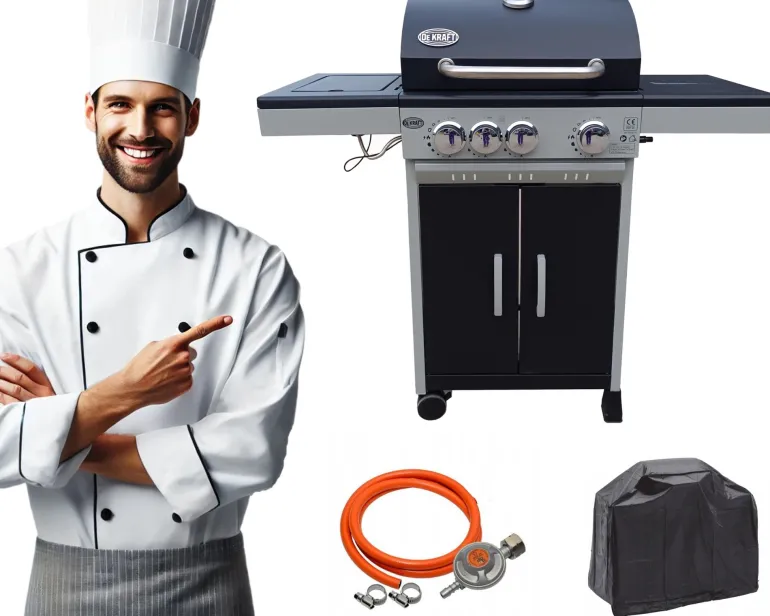 GRILL GAZOWY DEKRAFT 3+1 PALNIKI RUSZT ŻELIWNY + POKROWIEC