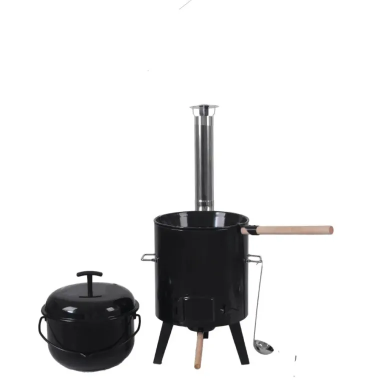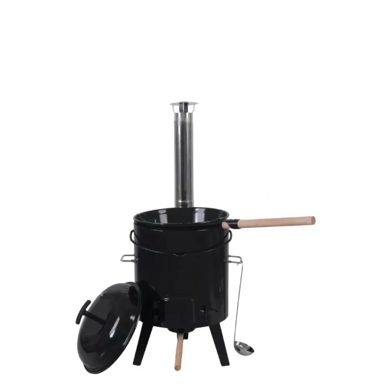 Kociołek ze zintegrowanym paleniskiem do przyrządzania zup, gulaszów, sosów lub grzanego wina na świeżym powietrzu np. na biwaku
