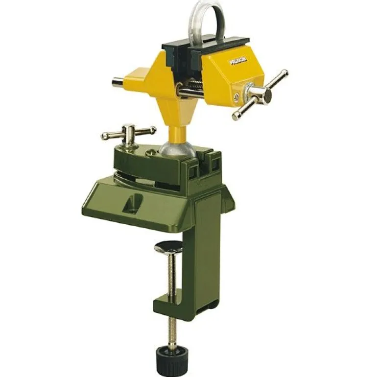 Imadło z przegubem kulowym. Łatwe mocowanie do stołów i blatów roboczych o grubości do 60 mm.