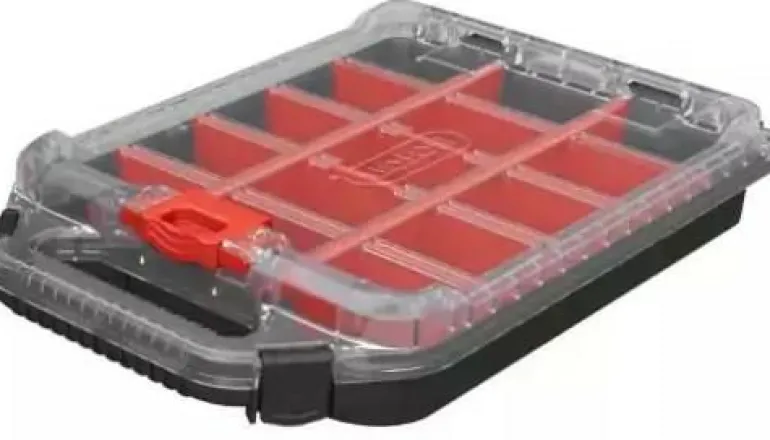 Podręczny organizer Stack’N’Roll o niewielkich rozmiarach stanowi kompaktową odpowiedź na przechowywanie drobnych akcesoriów. Wyposażony jest w 15-segmentowe regulowane przegrody oraz uchwyt dla wygodnego przenoszenia. Przezroczysta pokrywa sprawia, że można bardzo szybko zorientować się w zawartości organizera, a specjalna uszczelka w pokrywie chroni jego zawartość przed kurzem, wilgocią i przypadkowym kontaktem z wodą. Ten organizer jest lekki, łatwy do przenoszenia i kompatybilny z innymi skrzynkami z serii Stack’N’Roll.