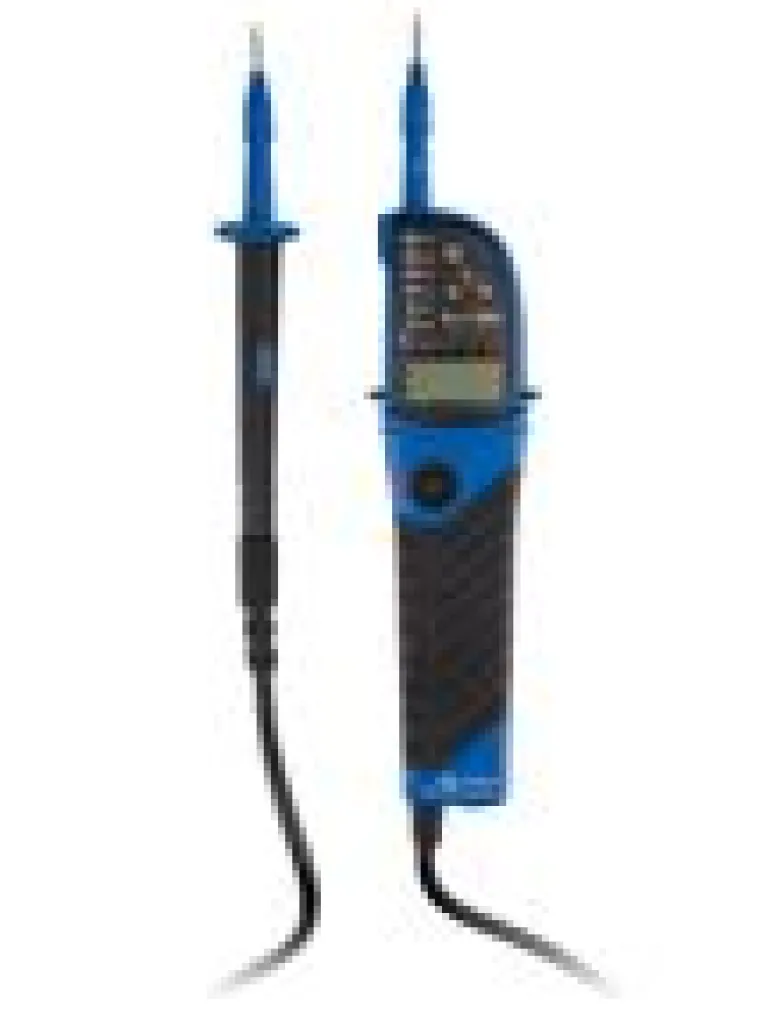 Wskaźnik polaryzacji. kolejności faz, sygnalizacja wysokiego napięcia > 50V, wskaźnik częstotliwości: 0-70 Hz, test ciągłości obwodu, wbudowana latarka LED, wyświetlacz LCD, klasa szczelności IP64, temperatura pracy: -10 do 55 stopni C, zasilanie: 2 x AAA 1,5V