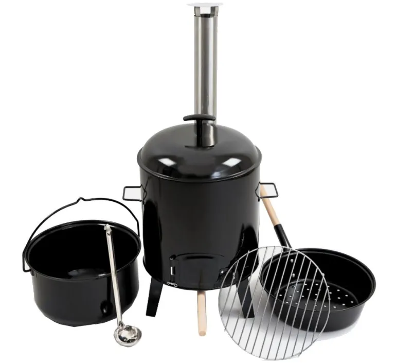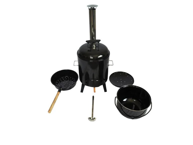 Rozmiar produktu: L42*W47*H91CMPowierzchnia gotowania: φ32,5cm1. Pokrywa: stal φ36,5 cm pokryta emalią 2. uchwyt: uchwyt z tworzywa sztucznego 3. Misa paleniskowa: φ36*35,5 cm, stal 0,5 mm pokryta emalią4. Garnek do zupy z uchwytem: φ 35*20,9 cm, stal 0,8 mm pokryta emalią5, łyżka: stal nierdzewna 6. Fay Pan: φ36*70,5*10,5 cm, stal 0,7 mm z emalią, z drewnianą rączką 7. popielnik: stal 8. Ruszt węglowy: φ32,5, drut stalowy z powłoką cynkową