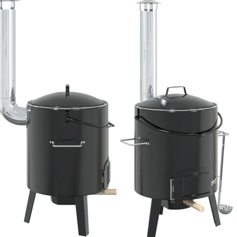 Kociołek ze zintegrowanym paleniskiem do przyrządzania zup, gulaszów, sosów lub grzanego wina na świeżym powietrzu np. na biwaku