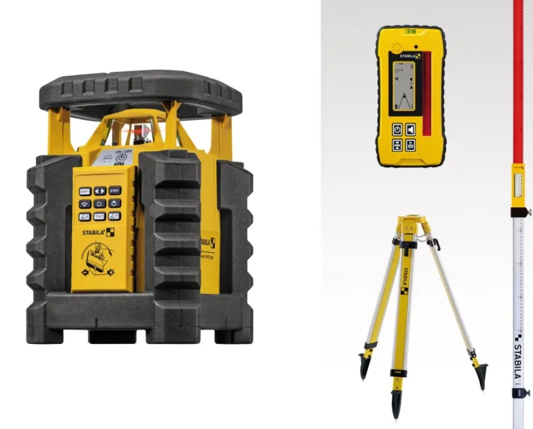 - Całkowicie zautomatyzowany, sterowany silnikiem laser obrotowy do zastosowań w poziomie i pionie oraz ręczne pochylanie w dwóch osiach.