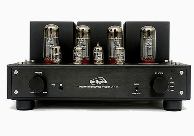 LineMagnetic-211IA wzmacniacz lampowy pracujący w układzie push-pull w klasie AB o mocy 2x15W w trybie triodowym i 2x32W w trybie ultra linear – pentodowy. Szeroki zakres pasma częstotliwości. Zdalne sterowanie wzmocnieniem i selektorem wejścia sygnału. Wzmacniacz reprodukuje bardzo wyrównany dźwięk, bez żadnych podbarwień.