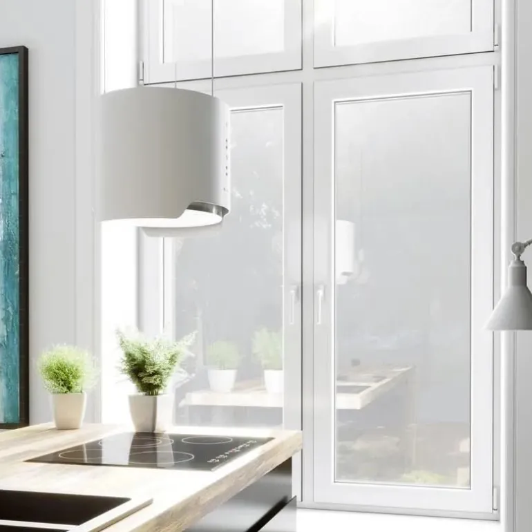 Spektakularna prezencja i doskonała wydajność. Okap wyspowy Arenoflow 39.4 White to absolutnie niezwykły element wyposażenia kuchennego wnętrza.