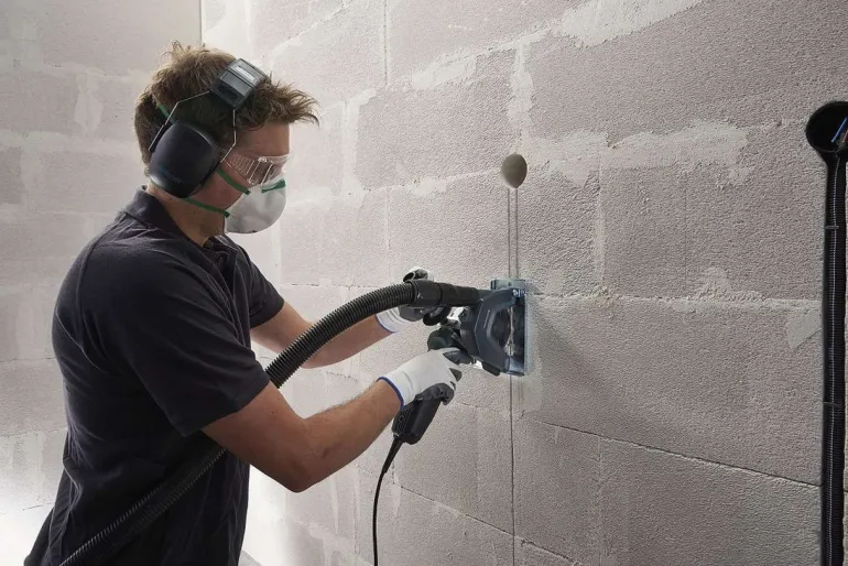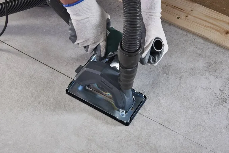 Wyposażona w przyłącze do odsysania pyłu kompatybilne ze wszystkimi odkurzaczami przemysłowymi z wężem Ø 32-36 mm.