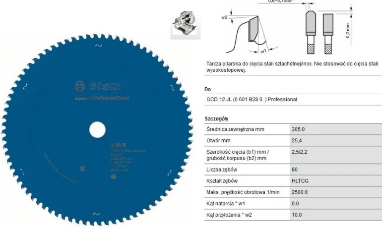 Tarcza pilarska do cięcia stali szlachetnej/Inox. Nie stosować do cięcia stali wysokostopowej.