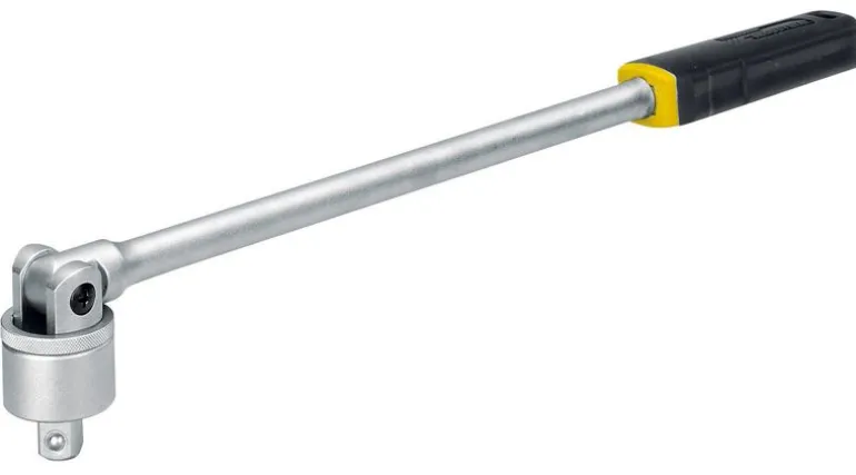 Umożliwia poluzowanie mocno zaciśniętych śrub bez dużego nakładu sił. Wytrzymały mechanizm grzechotkowy (60 zębów). Uchwyt wykonany z kwaso- oraz olejoodpornego TPR (thermoplastic rubber). Całkowita długość 43cm