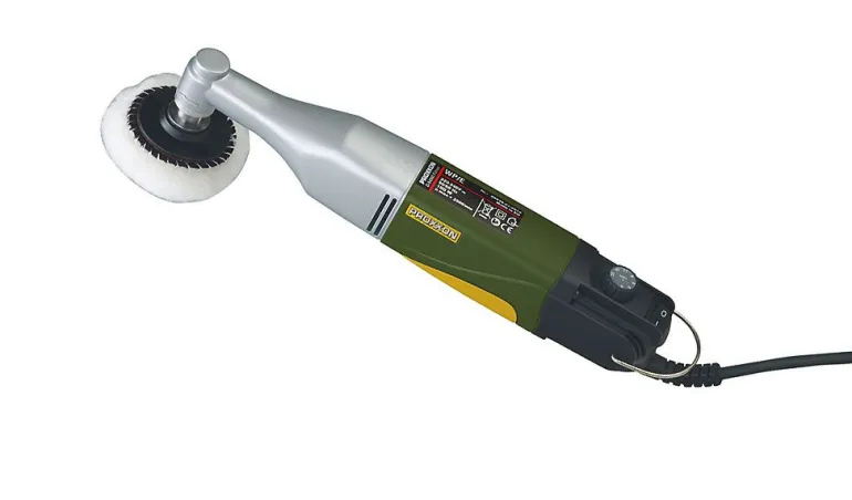 - Urządzenie oferowane w wytrzymałej POLIPROPYLENOWEj walizce z osprzętem: gumowy dysk z haczykiem i pętelką mocującą, gąbka polerująca (średnia twardość), dysk polerujący z owczej wełny, polerujący filc do metalu i metali nieżelaznych (średnia twardość), 12 ściernych dysków K 2000 oraz NIGRIN emulsja polerująca (75 ml), jak również nakładka z mikrofibry.