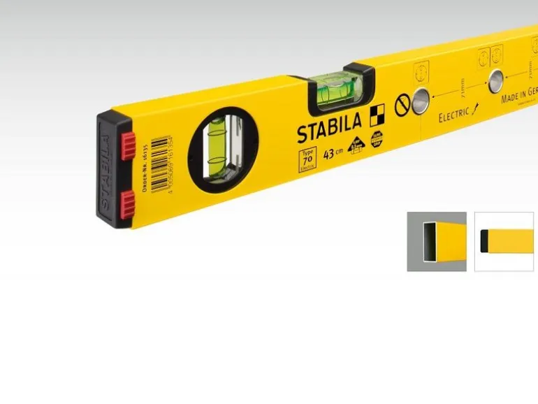 Z tą poziomnicą elektrycy mogą zaoszczędzić sporo czasu i wysiłku, albowiem umożliwia ona prawidłowe zaznaczanie odstępów otworów na gniazda wtyczkowe i wyłączniki w pionie i w poziomie w jednym etapie pracy. Obustronne stopki antypoślizgowe na zaślepkach zapewniają niezawodne przyleganie do wszystkich powierzchni. Innowacyjne rozwiązania do realizacji szczególnych potrzeb: to specjalność firmy STABILA.