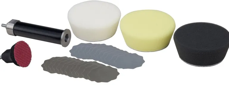 Profesjonalny zestaw do szlifowania i polerowania. Zawiera przedłużkę 80 mm oraz 30 mm poduszkę mocującą