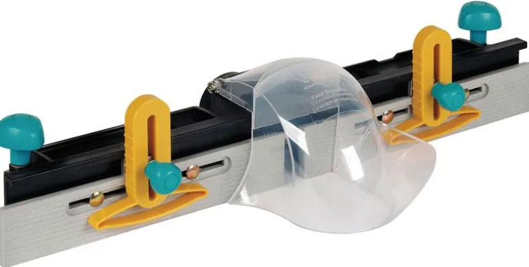 – bezpieczne mocowanie prowadnicy frezarskiej za pomocą pokręteł bez potrzeby użycia dodatkowych narzędzi