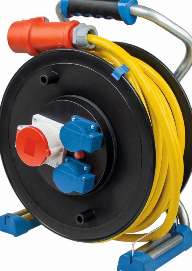 · gniazda: gniazda: 2 x 230 V, 1 x 400 V / 16 A (z klapkami), wtyczka: 400 V / 16 A
