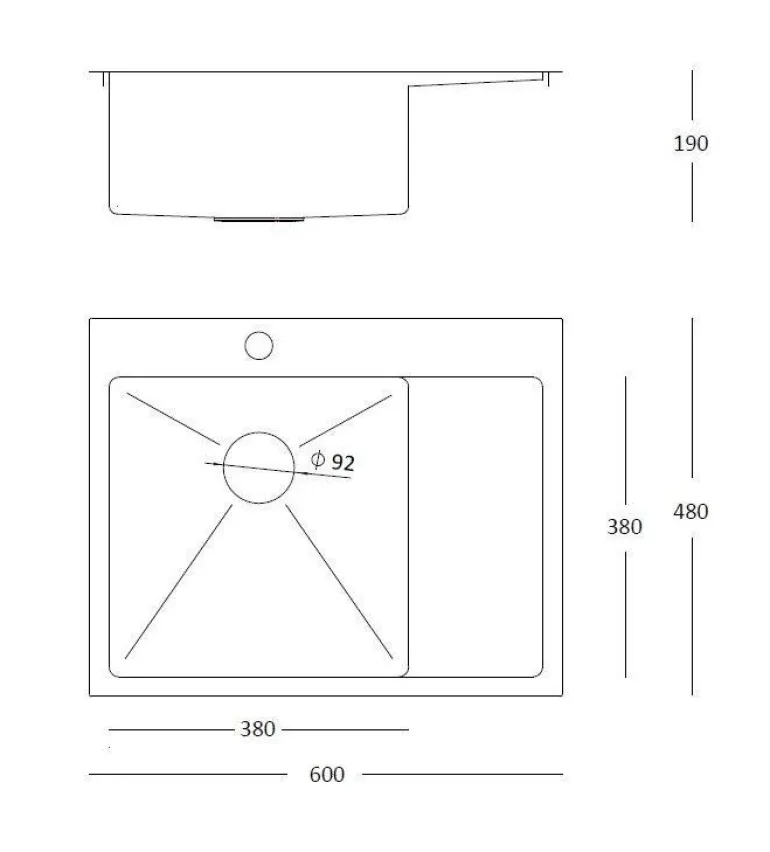 - Wymiar zlewozmywaka: 600 mm x 480 mm x 190