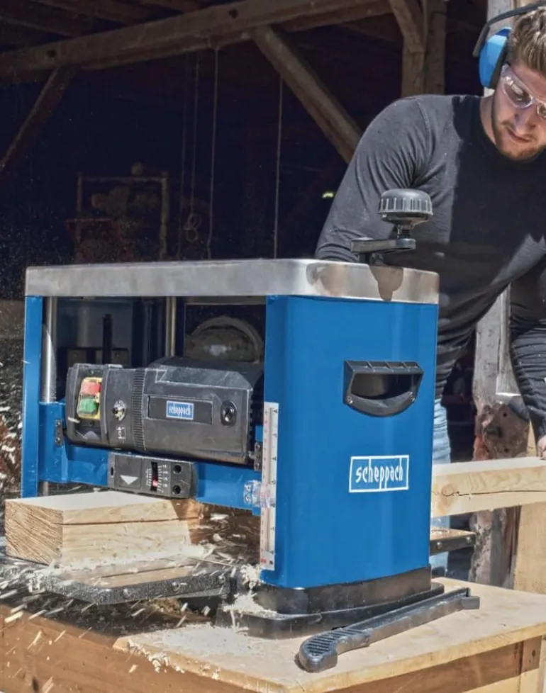 zalety nowej strugarki Scheppach PLM1800. Prosta i niezawodna podczas obróbki drewna