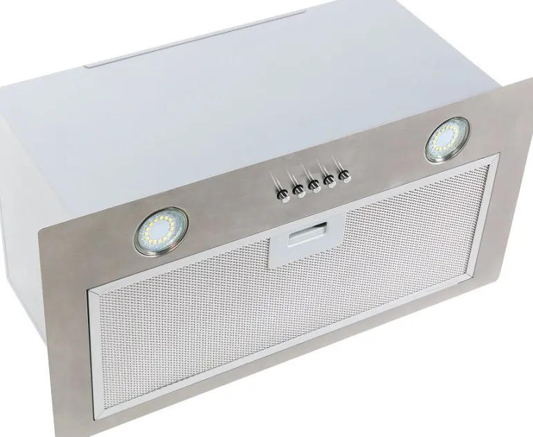 Okap do pełnej zabudowy, podszafkowy min. szerokość szafki 30 cm. Występuje w dwóch rozmiarach 52 oraz 70 cm. Oświetlenie – dwa okrągłe światła LED o mocy 3 W każde. Neutralna barwa światła. Sterowanie przyciskowe. Możliwość korzystania z okapu jako wyciąg jak i pochłaniacz.