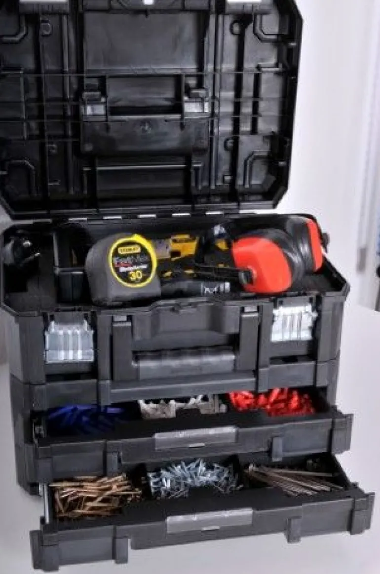 Zapewnia bezpieczne przechowywanie drobnych elementów, akcesoriów, narzędzi ręcznych i elektronarzędzi.