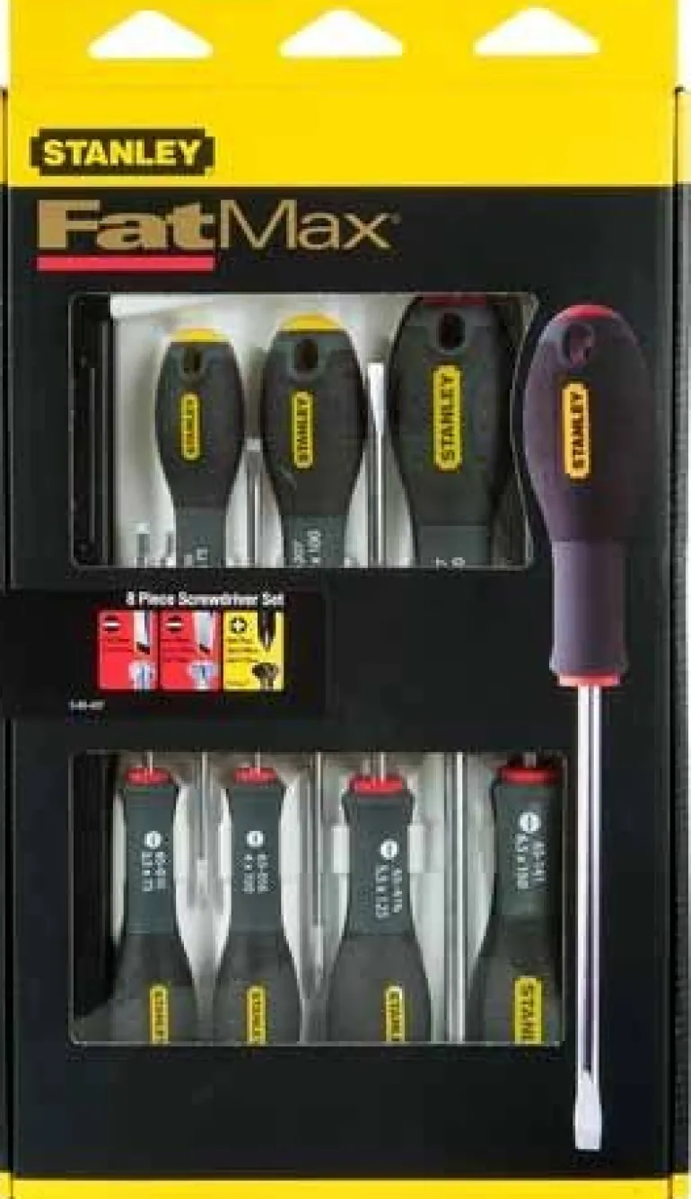 0-65-437 Zestaw 8 szt. wkrętaków: Płaskie 4 x 100 mm, 6,5 x 150 mm, 8 x 150 mm, Pł równ. 3,5 x 75 mm, 5,5 x 125 mm, Phillips Ph 0 x 75 mm, Ph 1 x 100 mm, Ph 2 x 125 mm.
