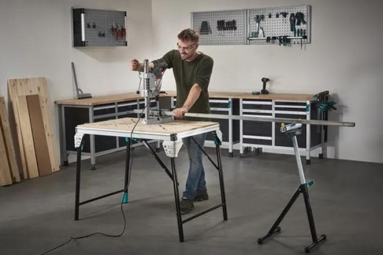 Przenośny stół roboczy oferujący wiele możliwości mocowania ściskami i montażu urządzeń stacjonarnych