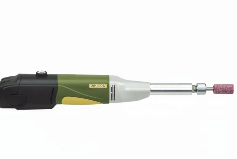 Głowica z odlewanego ciśnieniowo aluminium z szyjką wrzeciona o długości 75 mm, dzięki czemu idealnie nadaje się do szlifowania wewnętrznego i stosowania w rowkach i kanałach. Wydajność zawarta w kompaktowej konstrukcji – przy zaledwie 800 g znacznie lżejszej niż standardowe szlifierki proste. Uchwyt narzędziowy z wielozakresowymi tulejami zaciskowymi typu ER 11 (w zestawie tuleja zaciskowa 6 mm). W komplecie z korundowym wałkiem szlifierskim (ziarnistość 36), akumulatorem litowo-jonowym Li/A2 i szybką ładowarką LG/A2.